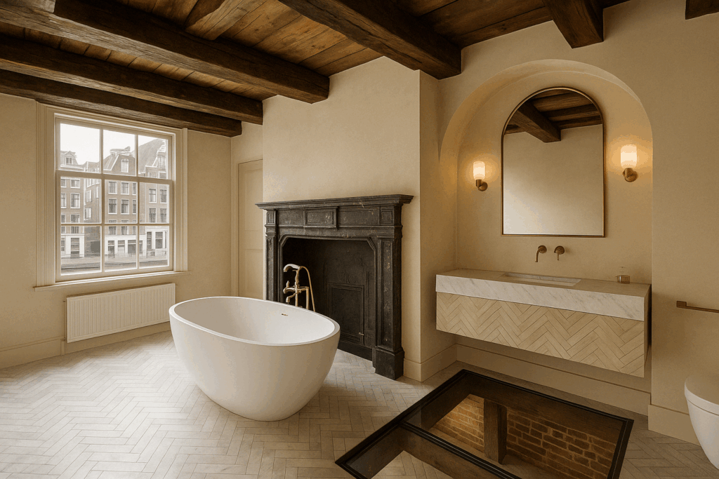 Een traditionele Franse techniek waarbij een mengsel van cement, zand, pigmenten en bindmiddelen in meerdere lagen wordt aangebracht. Betonciré geeft een subtiele, handgemaakte textuur die bijzonder elegant kan zijn in badkamers.